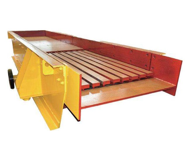 ZSW振動(dòng)給料機主要由振動(dòng)機架、彈簧、振動(dòng)器、電機振動(dòng)架及電機等組成。激振器個(gè)是由二特定位置的偏心軸以齒輪相嚙合組成,裝配時(shí)必須使兩齒輪按標記相嚙合,通過(guò)電機驅動(dòng),使兩偏心軸旋轉,從而產(chǎn)生巨大合成的直線(xiàn)激振力,使機體在支承彈簧上作強制振動(dòng),物料則以此振動(dòng)為動(dòng)力,在料槽上作滑動(dòng)及拋擲運動(dòng),從而使物料前移而達到給料目的。當物料通過(guò)槽體上的篩條時(shí),較小的料可通過(guò)篩條間隙而落下,可不經(jīng)過(guò)下道的破碎工序,起了篩分的效果。